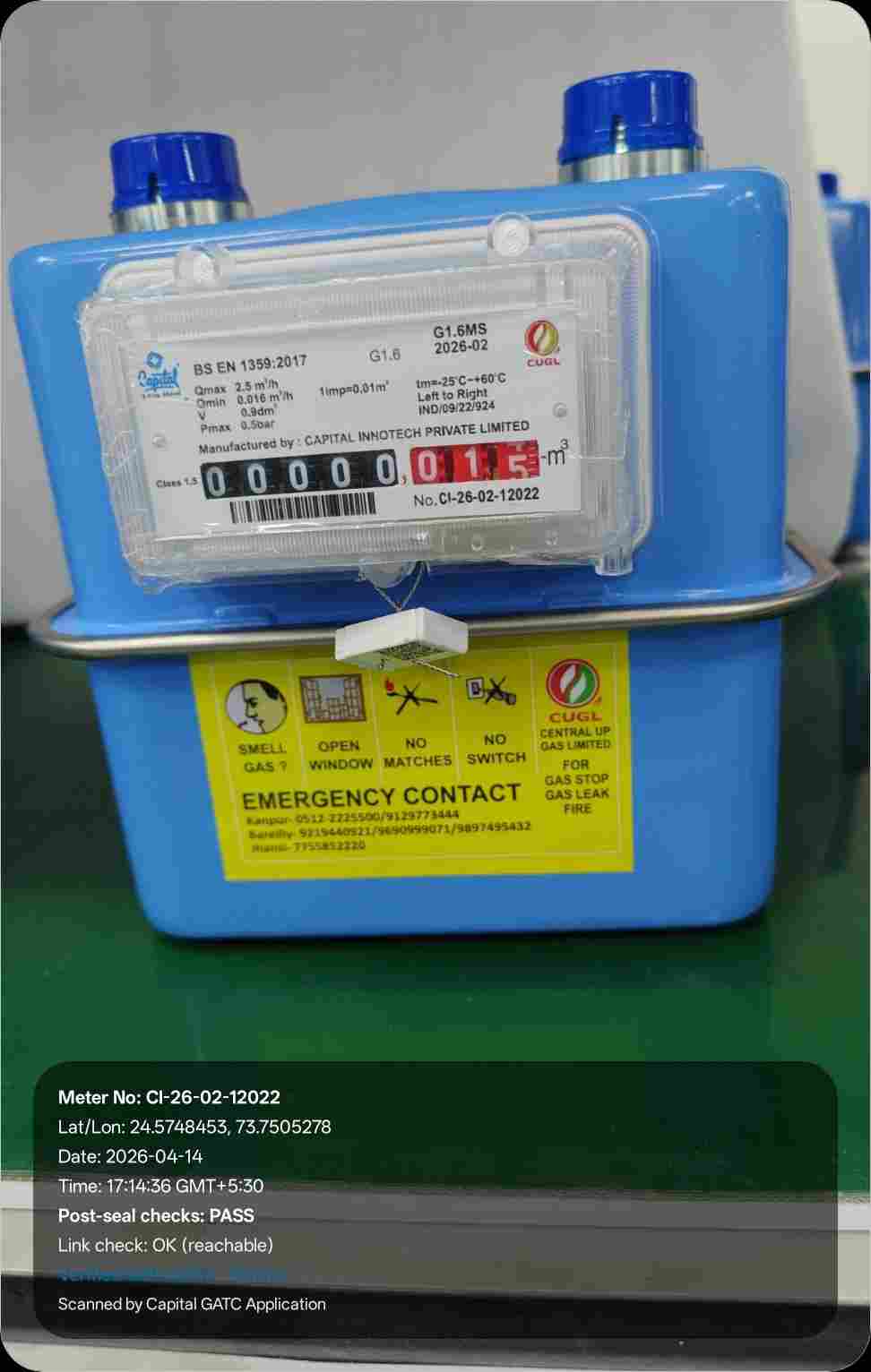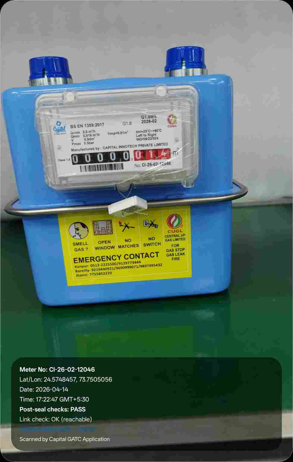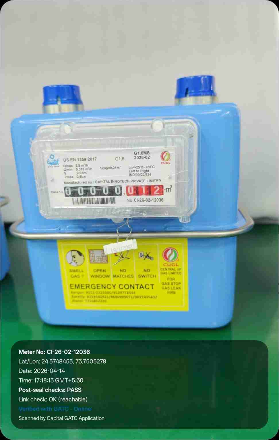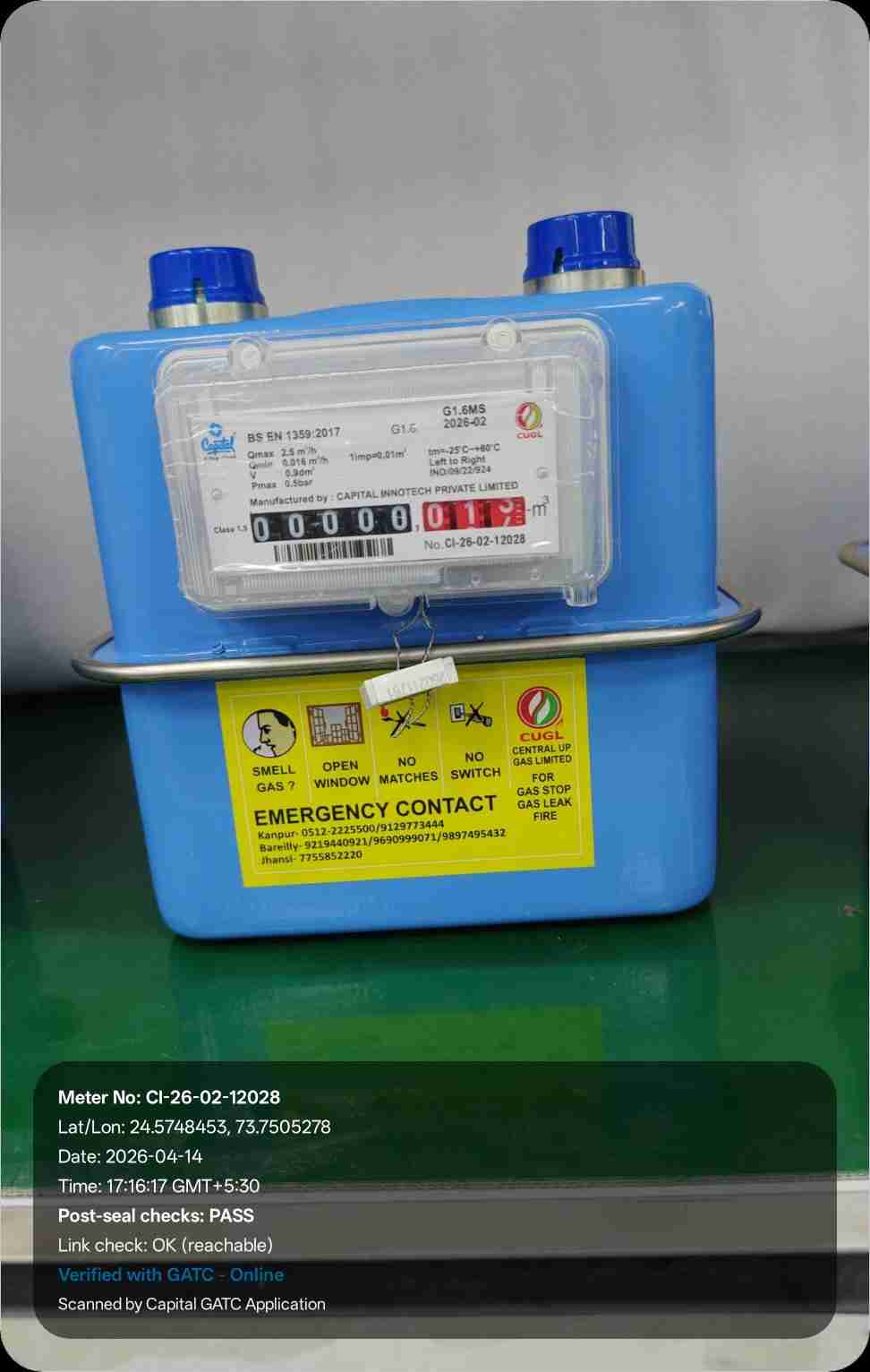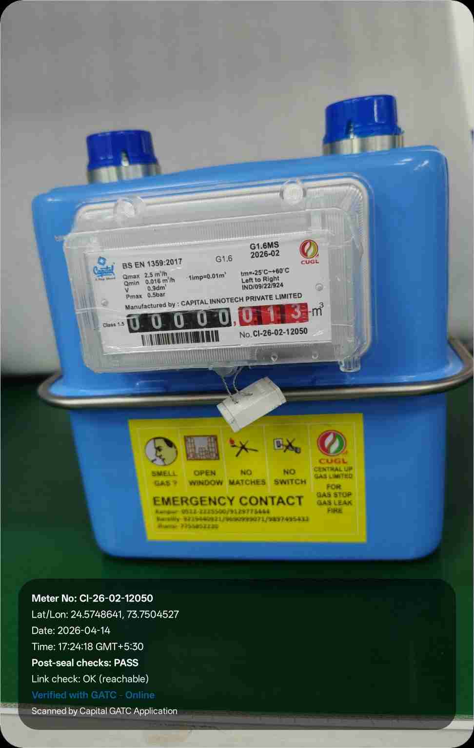 | 26 | IND/GATC/RJ/25/06 | IND/GATC/RJ/25/06/26/941 | Gas meters | CUGL | 2033-04-05 | View Certificate | View Photo | 2026-04-14 18:43:40 |