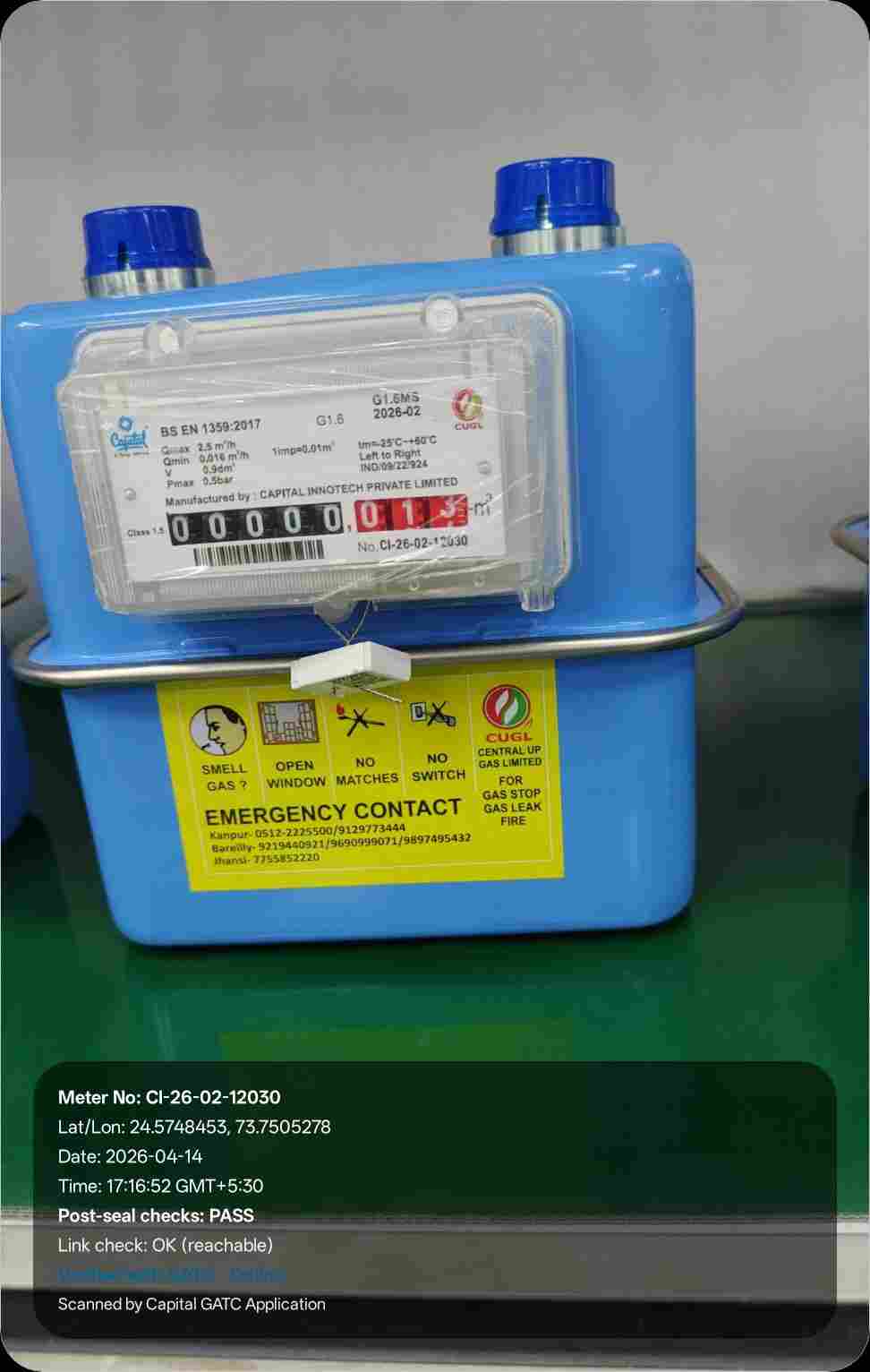 | 30 | IND/GATC/RJ/25/06 | IND/GATC/RJ/25/06/26/936 | Gas meters | CUGL | 2033-04-05 | View Certificate | View Photo | 2026-04-14 18:43:34 |