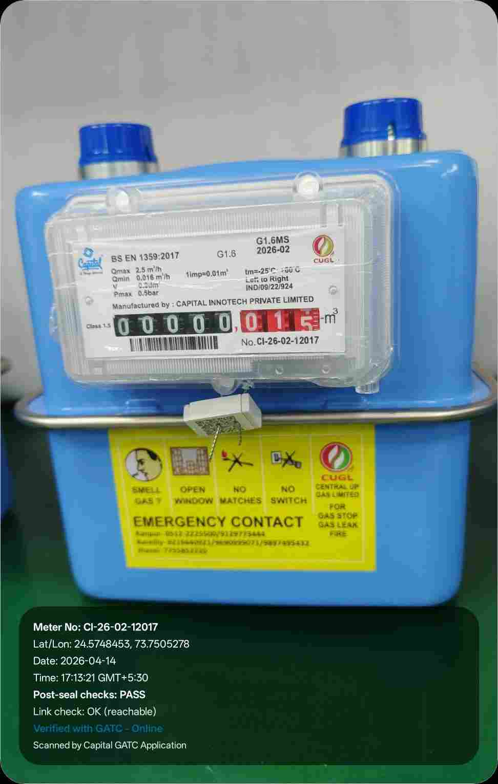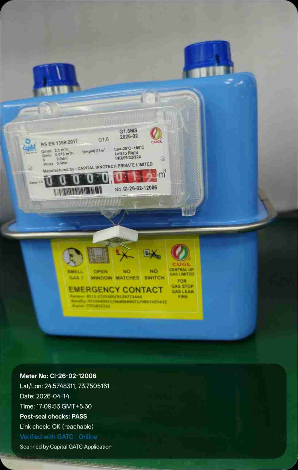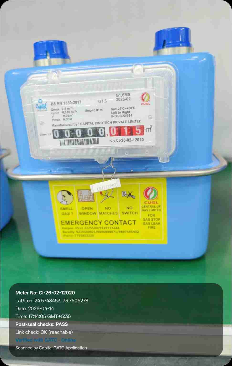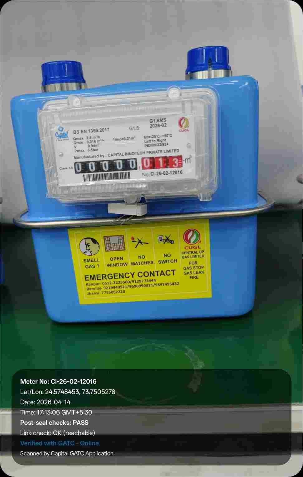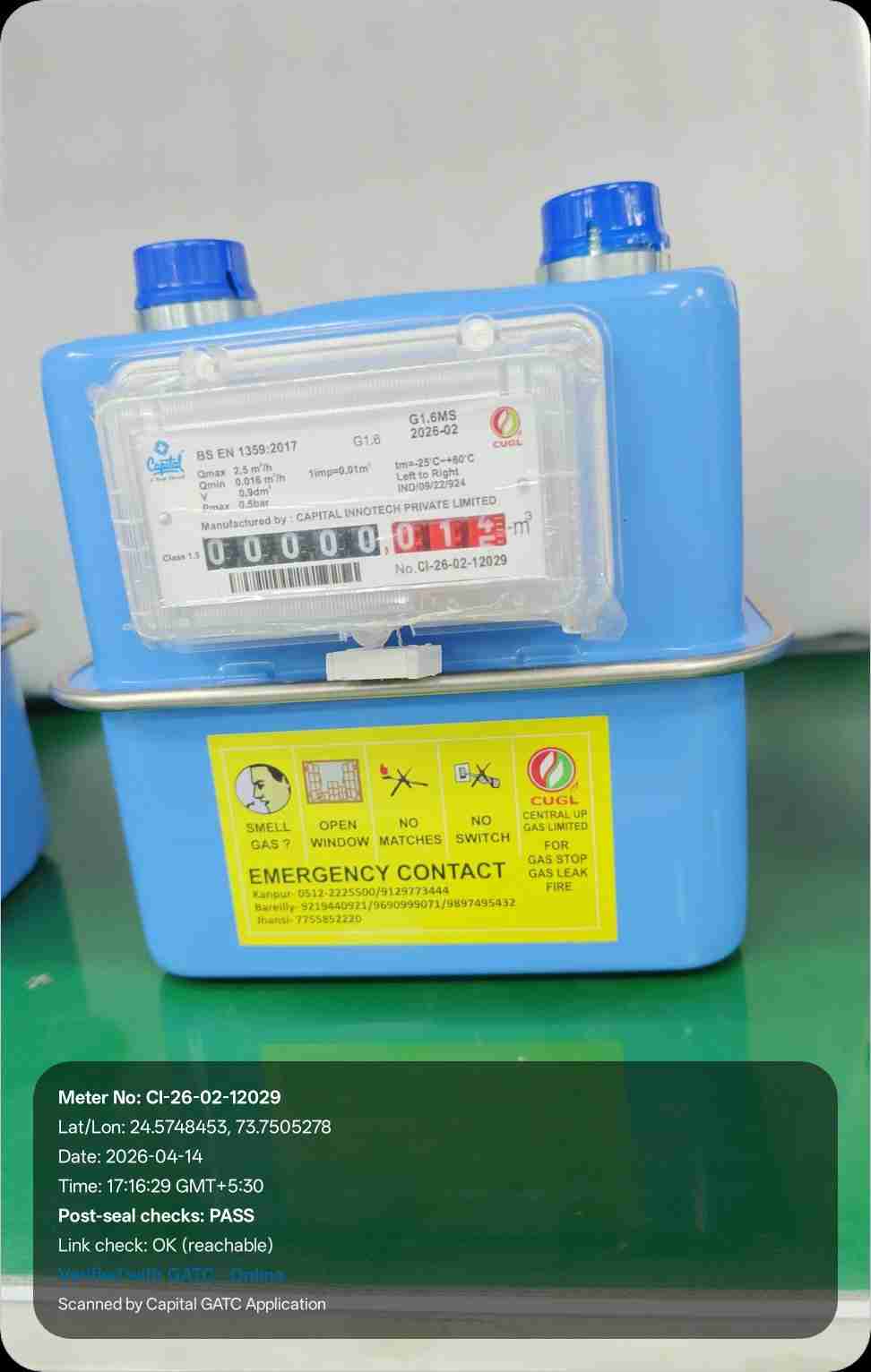 | 16 | IND/GATC/RJ/25/06 | IND/GATC/RJ/25/06/26/934 | Gas meters | CUGL | 2033-04-05 | View Certificate | View Photo | 2026-04-14 18:20:58 |