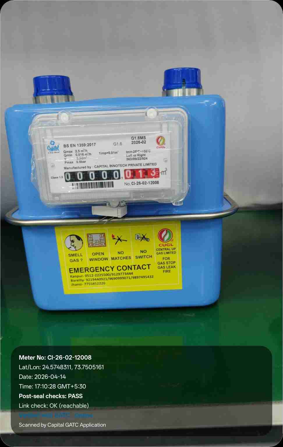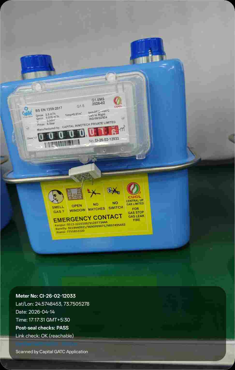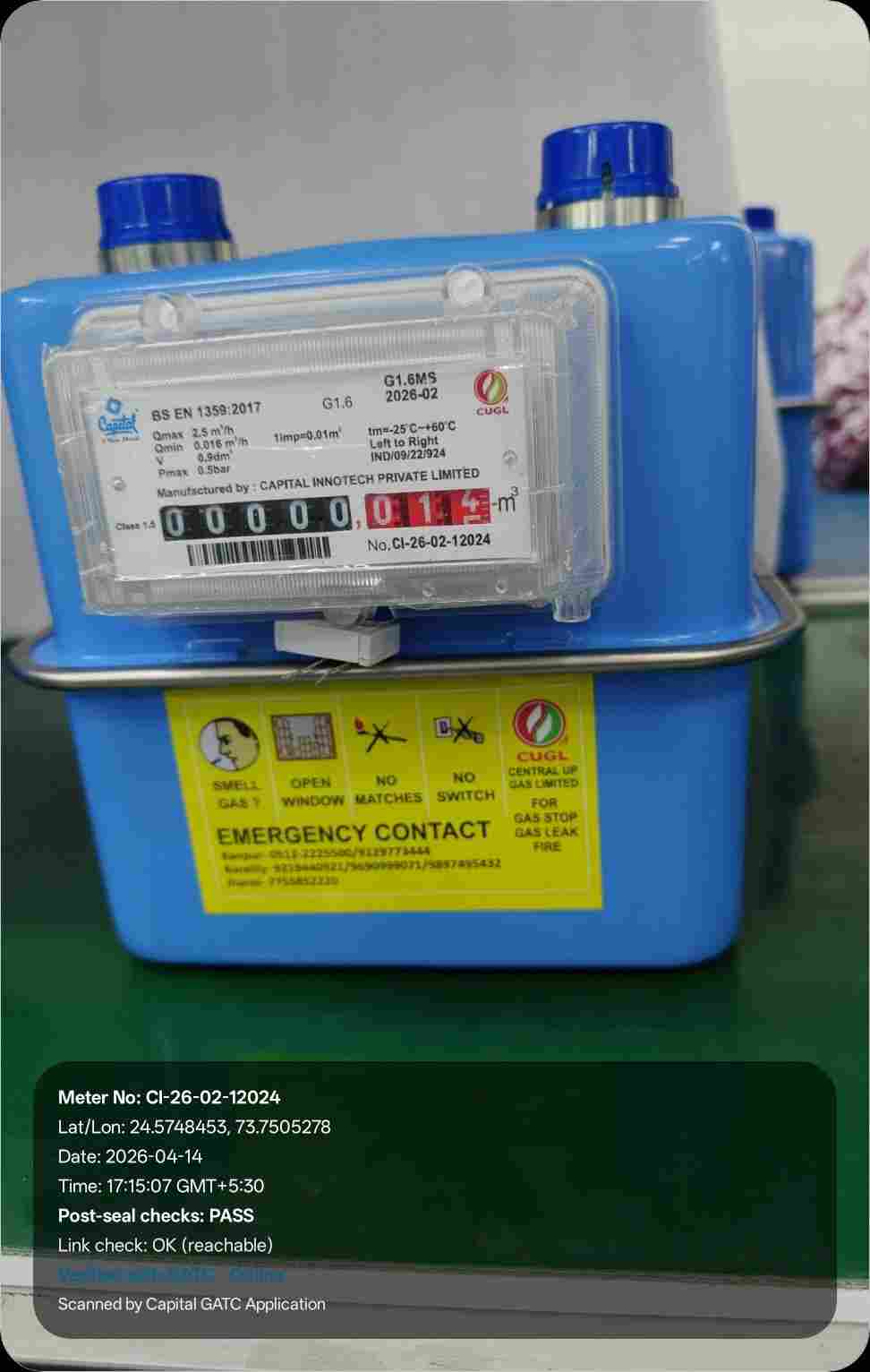 | 24 | IND/GATC/RJ/25/06 | IND/GATC/RJ/25/06/26/925 | Gas meters | CUGL | 2033-04-05 | View Certificate | View Photo | 2026-04-14 18:20:39 |