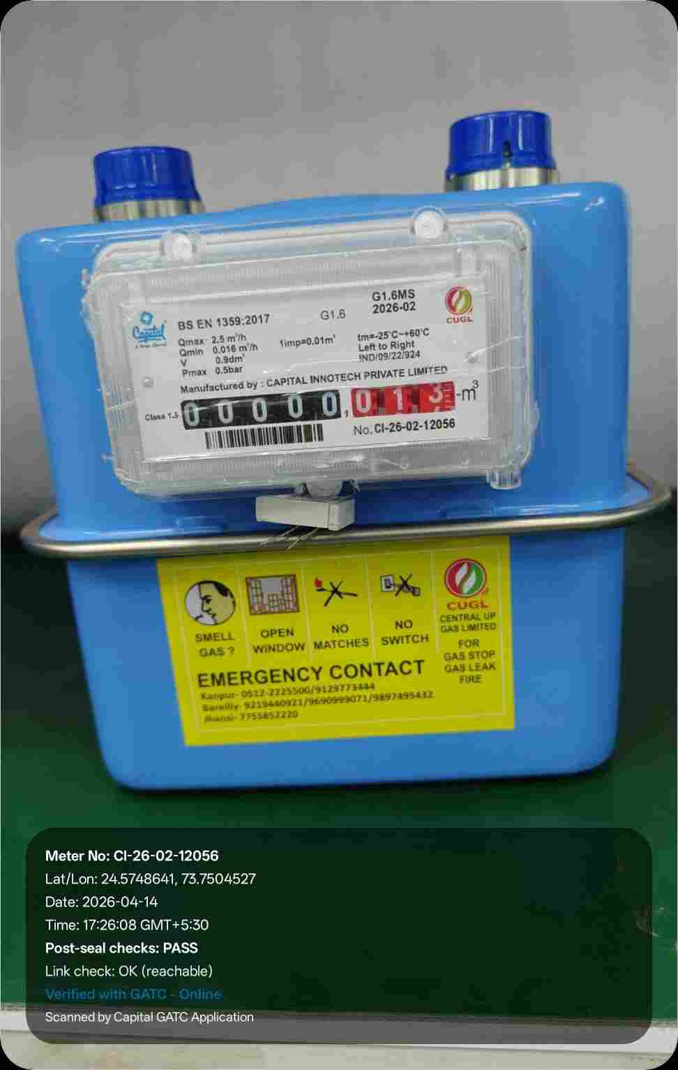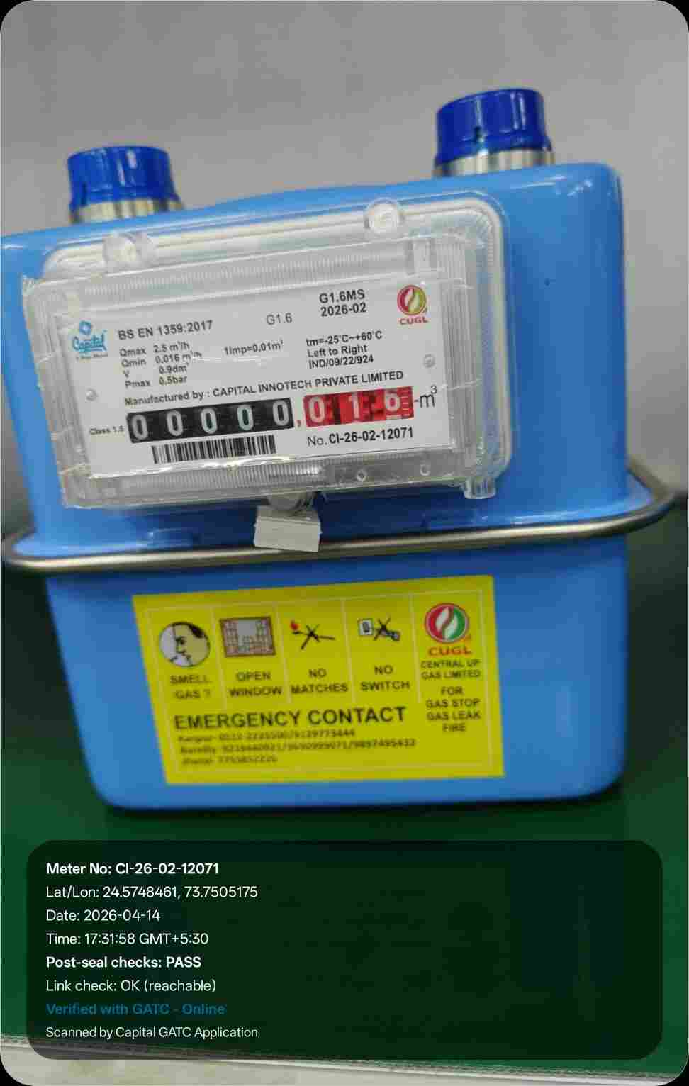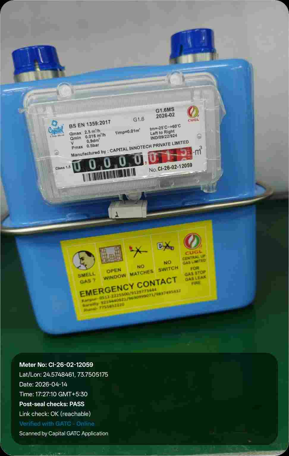 | 16 | IND/GATC/RJ/25/06 | IND/GATC/RJ/25/06/26/984 | Gas meters | CUGL | 2026-04-05 | View Certificate | View Photo | 2026-04-14 18:12:04 |