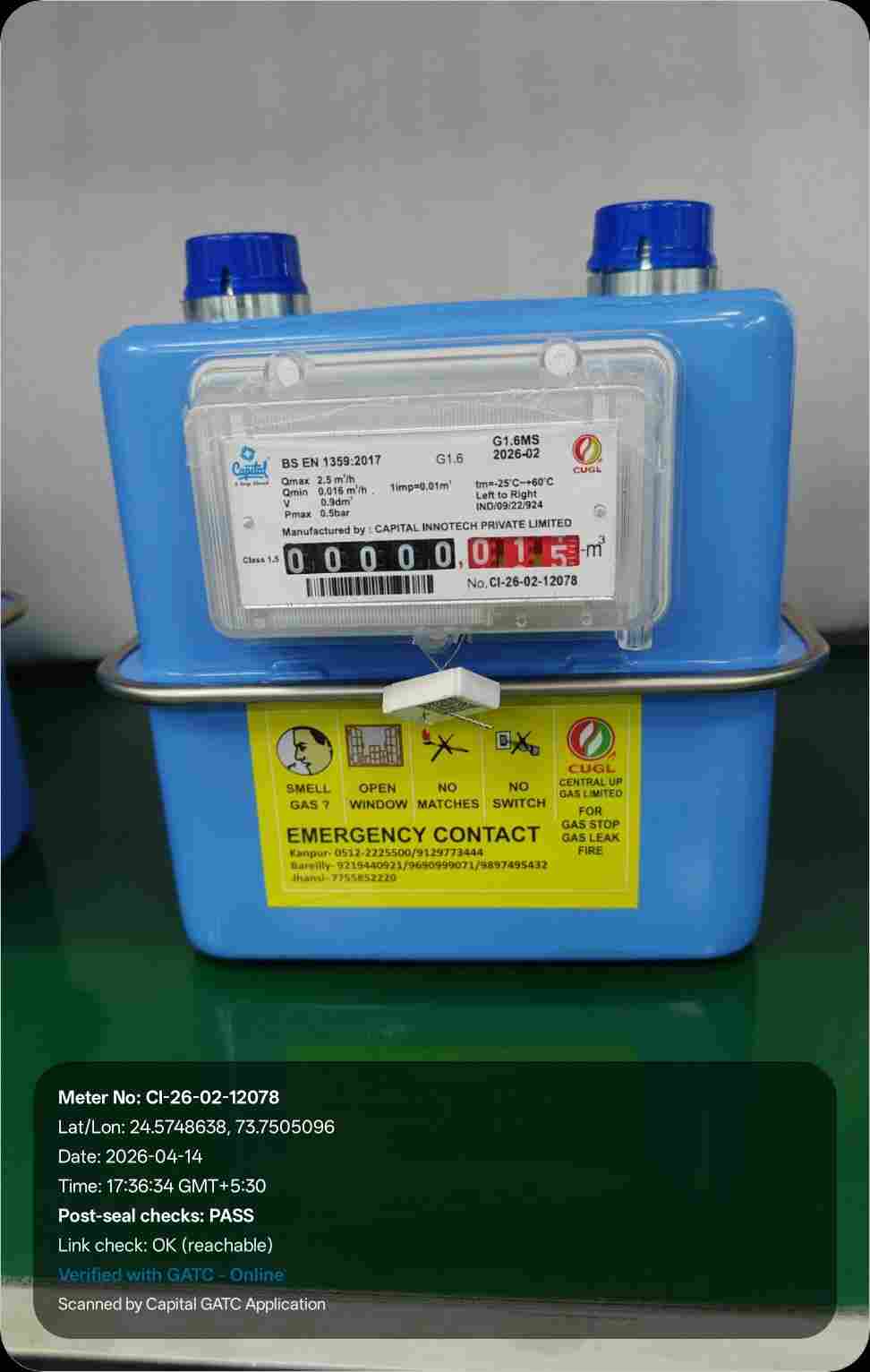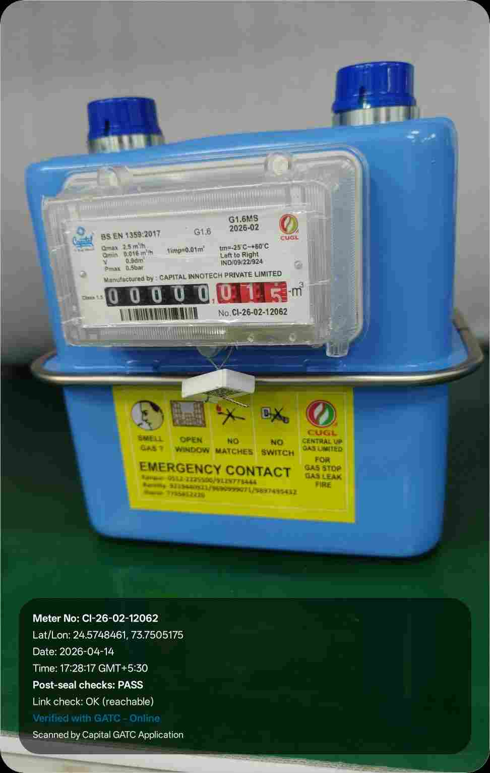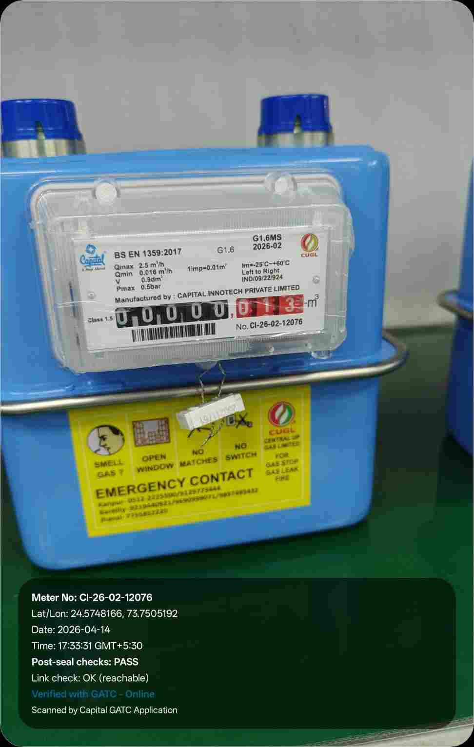 | 16 | IND/GATC/RJ/25/06 | IND/GATC/RJ/25/06/26/984 | Gas meters | CUGL | 2026-04-05 | View Certificate | View Photo | 2026-04-14 18:12:04 |